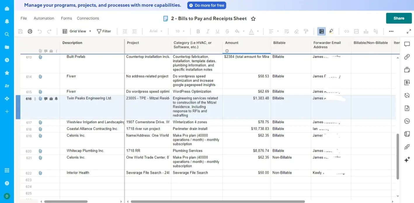 Gone are the days of manually sorting through invoice emails, extracting details, and updating records! This automation is designed to streamlines invoice processing by combining Gmail, PDF.co, OpenAI, and Smartsheet—saving valuable time and reducing human error. This automation allows you to extract structured data directly from your email, either as document or as text-based emails, automate invoice handling, and enable easy finance management.