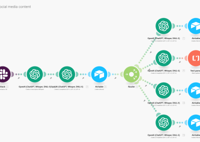 This is a flow for social media content creation automation with make. This automation is designed to simplify social media content creation and publishing by converting voice recording to different types of social media contents. You get a free consultation when you buy this demo.